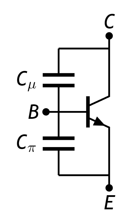 Likewise, the BC junction’s depletion region also has a capacitance. We call this \(C_{\mu}\).