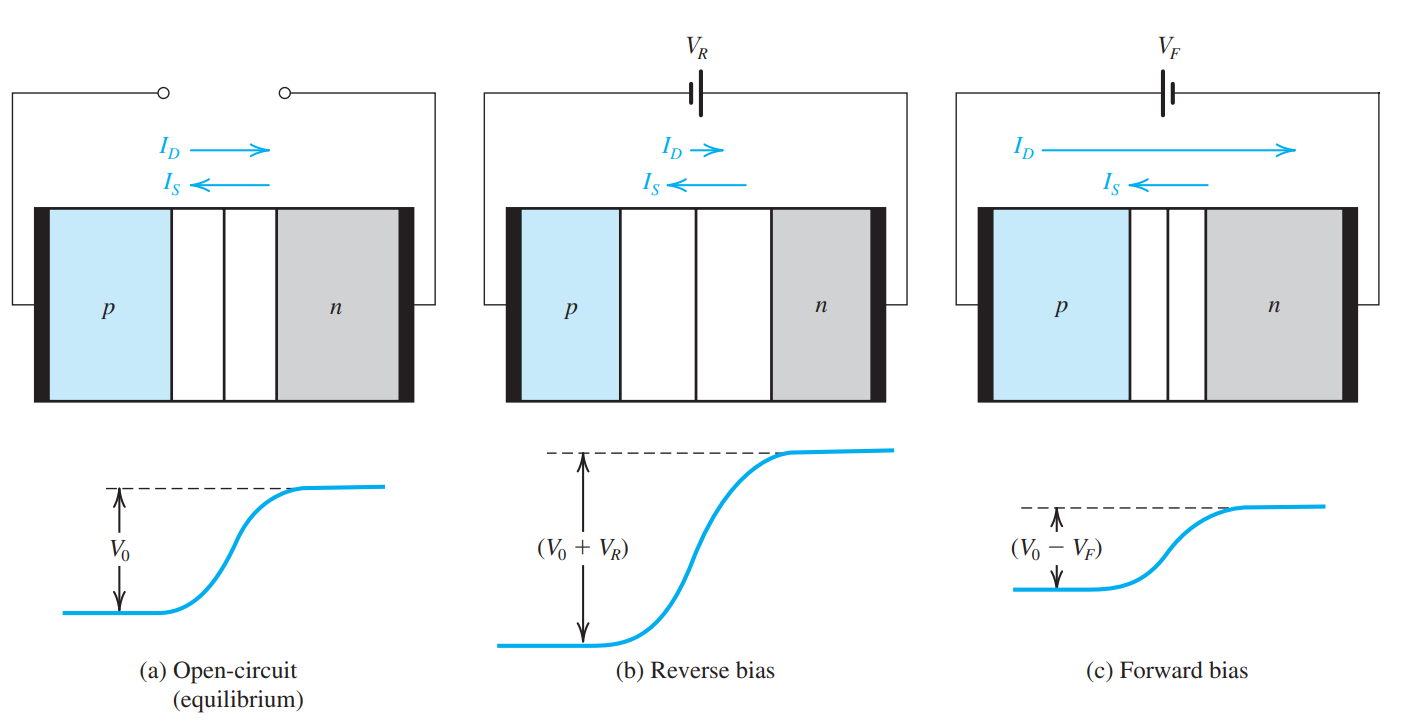 As we discussed before, the width of the depletion region changes with applied voltage. It is known that \(W_{dep} \propto \sqrt{V_{bi} - V_{BE}}\).