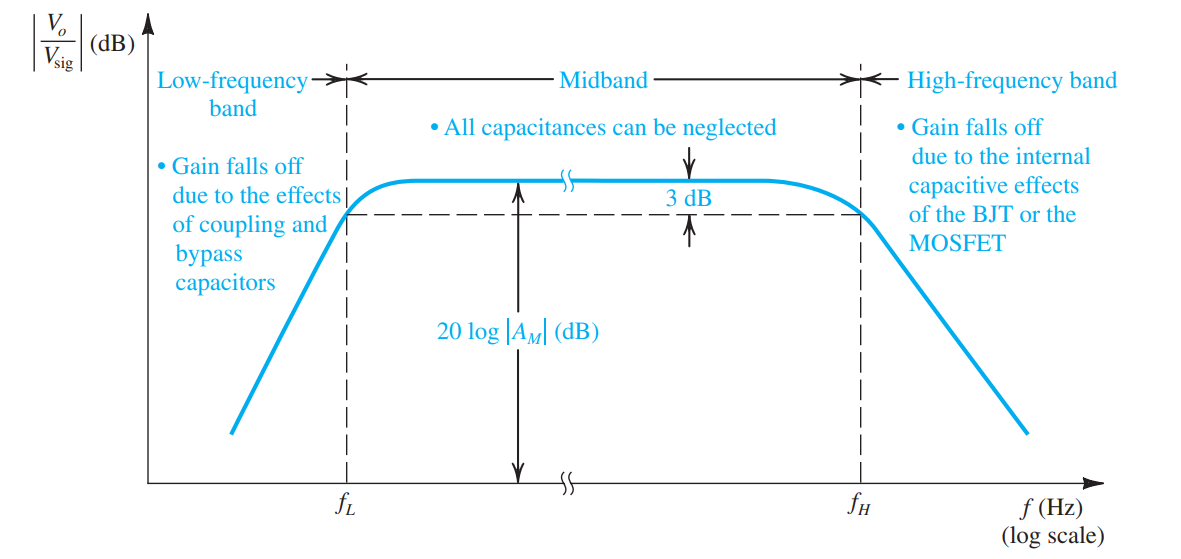 Most amplifiers have a frequency response that looks like the following: