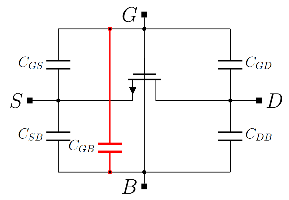 So, only \(C_{gs}\), \(C_{gd}\) and \(C_{db}\) survive.