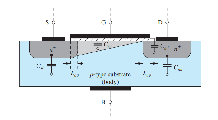 The MOS has three sources of parasitics: